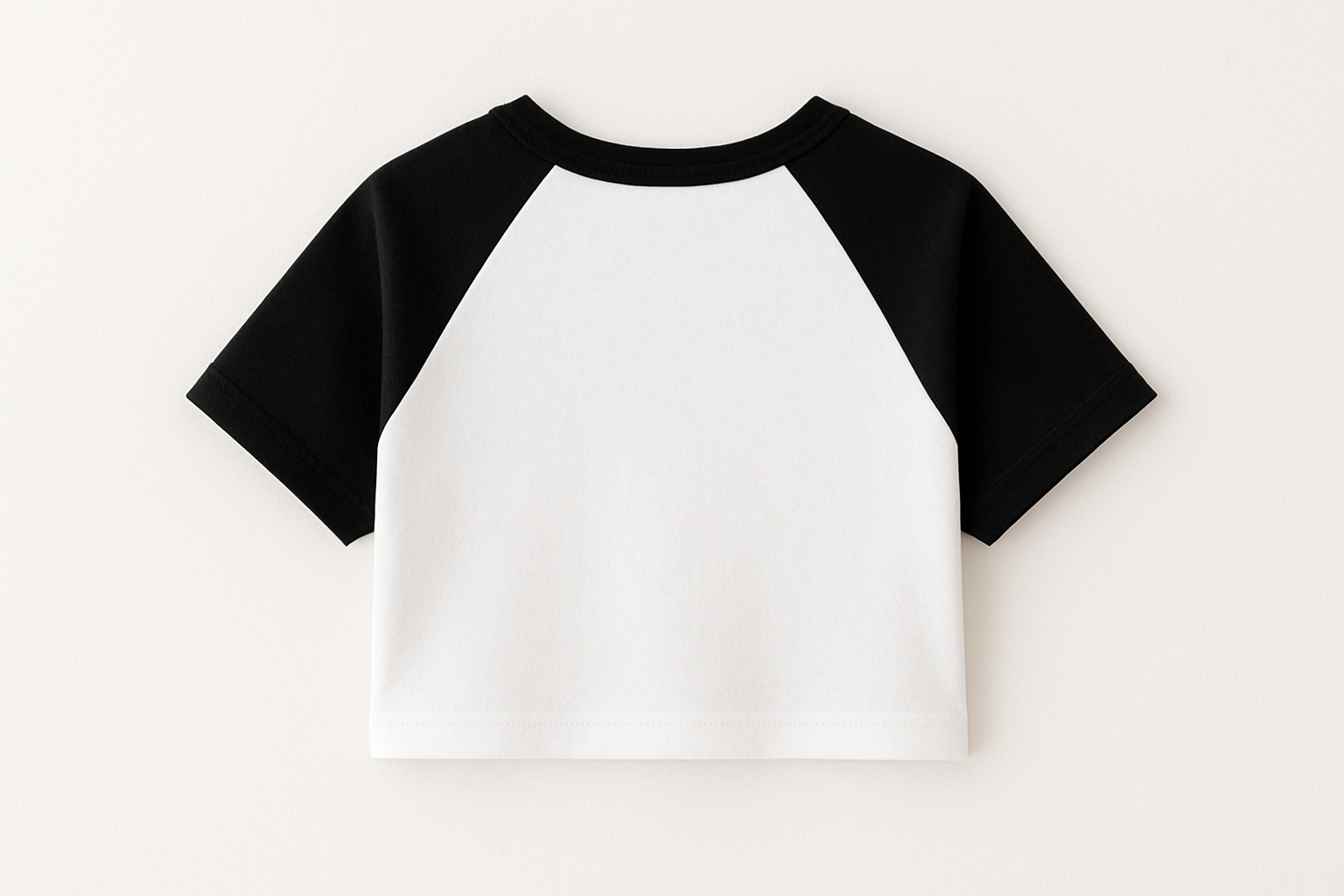 Level up your street style with this bold black-and-white raglan crop tee. Clean contrast, perfect fit, and made from soft cotton.